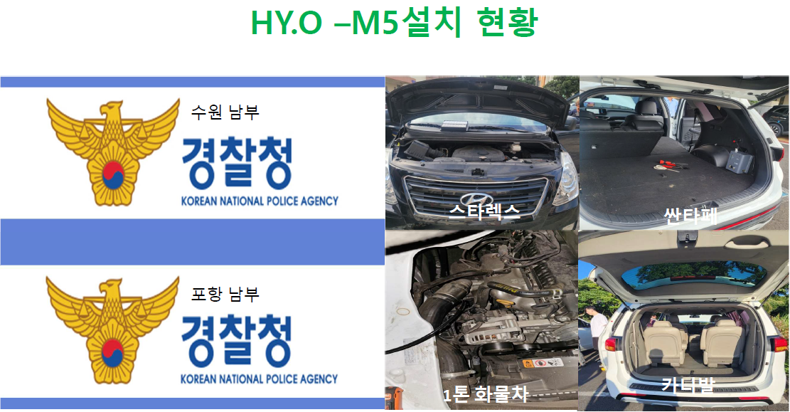 - 경찰청(수원남부·포항남부): 스타렉스, 1톤 화물차 장착 완료