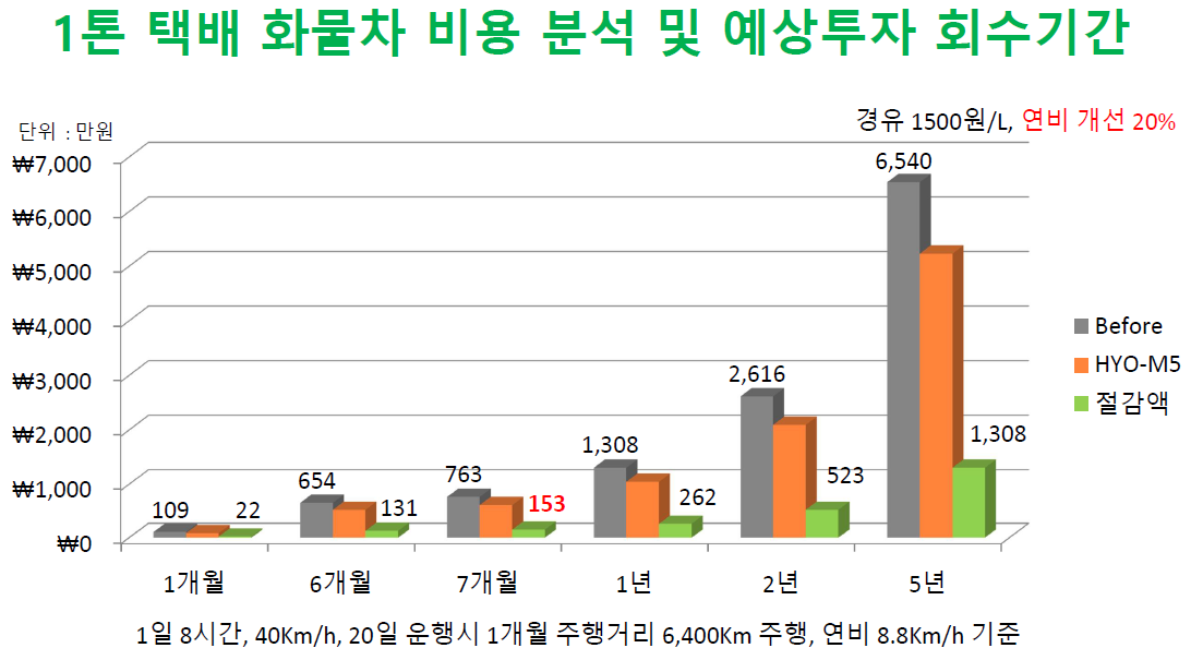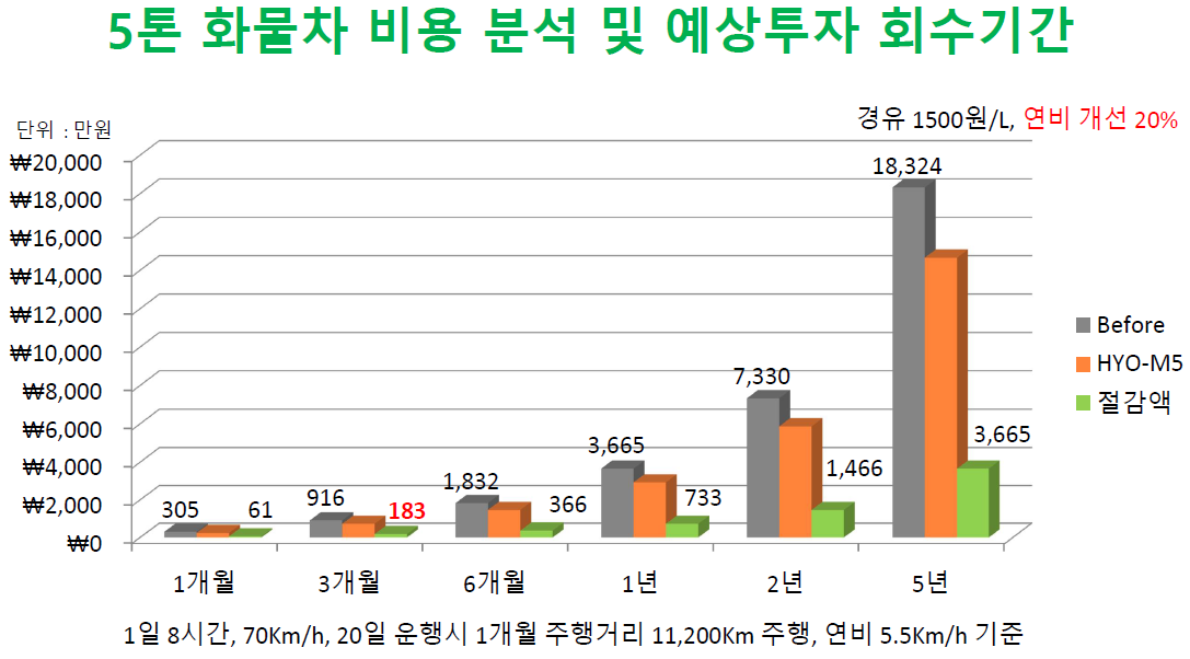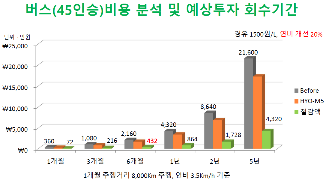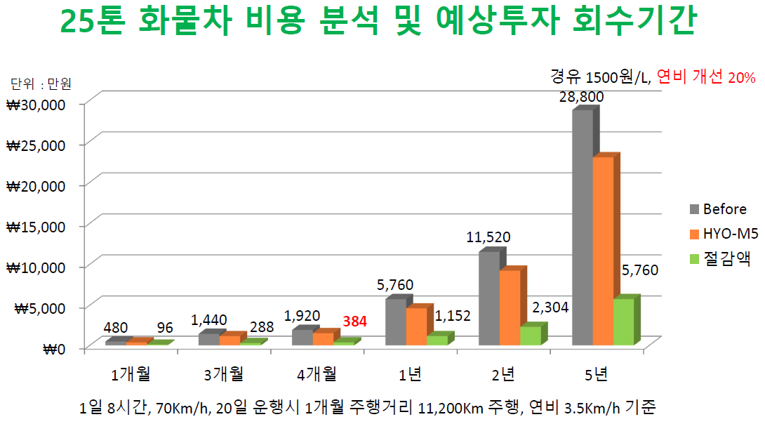 | 투자 회수 기간 | 3~6개월 내 원가 회수 가능, 연료비/요소수 절감 누적 효과 |