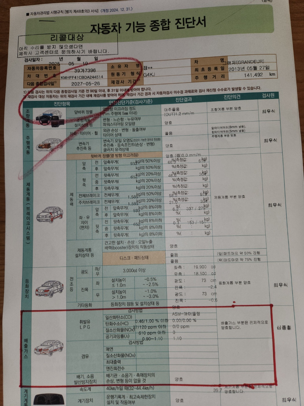 📍 실제 검사 결과 요약 (승용차 기준)
