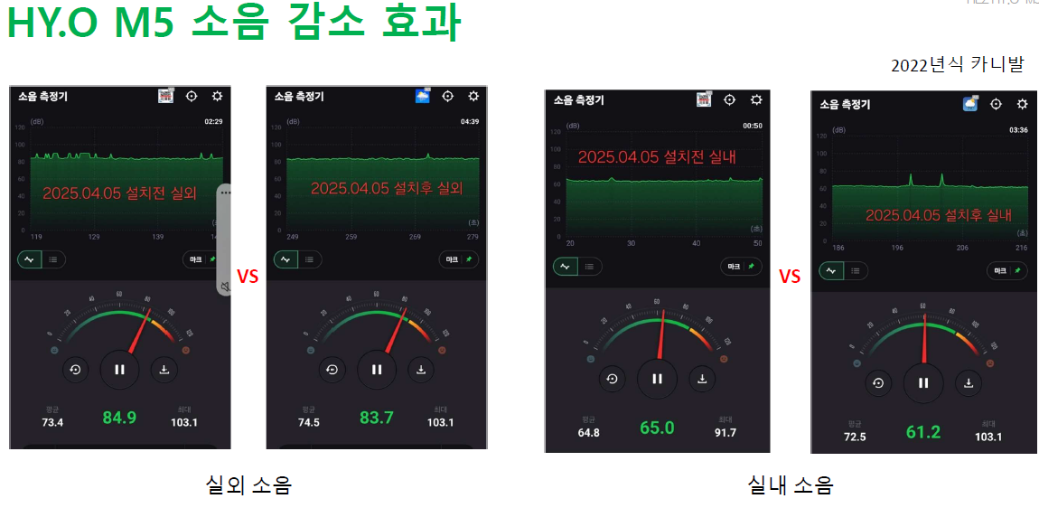 | 실외 평균 소음 | 84.9 dB | 83.7 dB |
